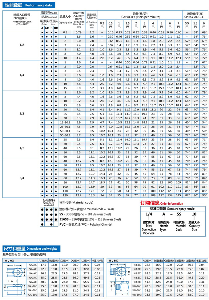 Application consulting: 139 1663 9930 Design features of hollow nozzle: The characteristics of A/B series wide-angle medium and small flow spray nozzles are that they can produce a hollow conical spray shape, the spray area is circular, and